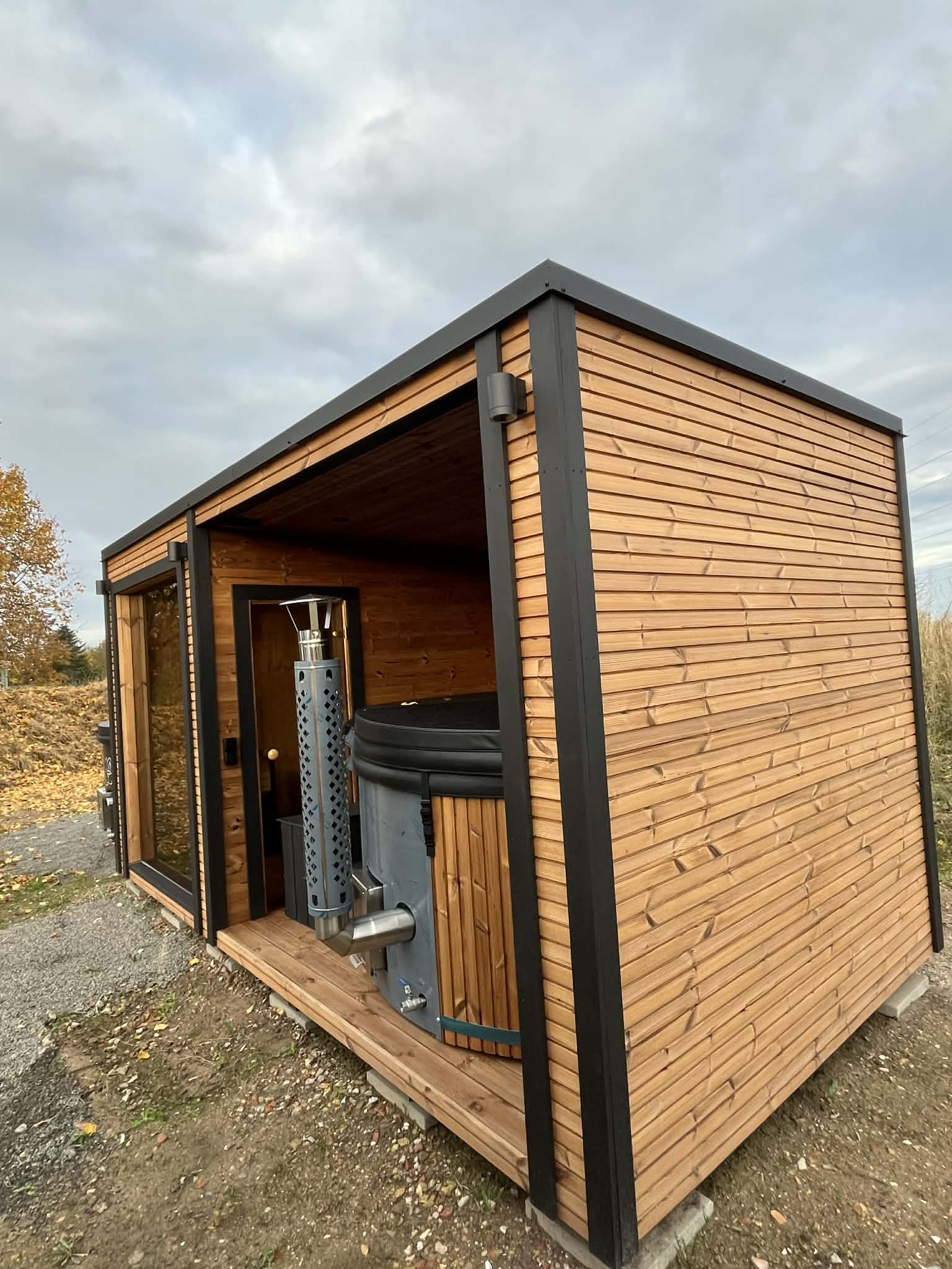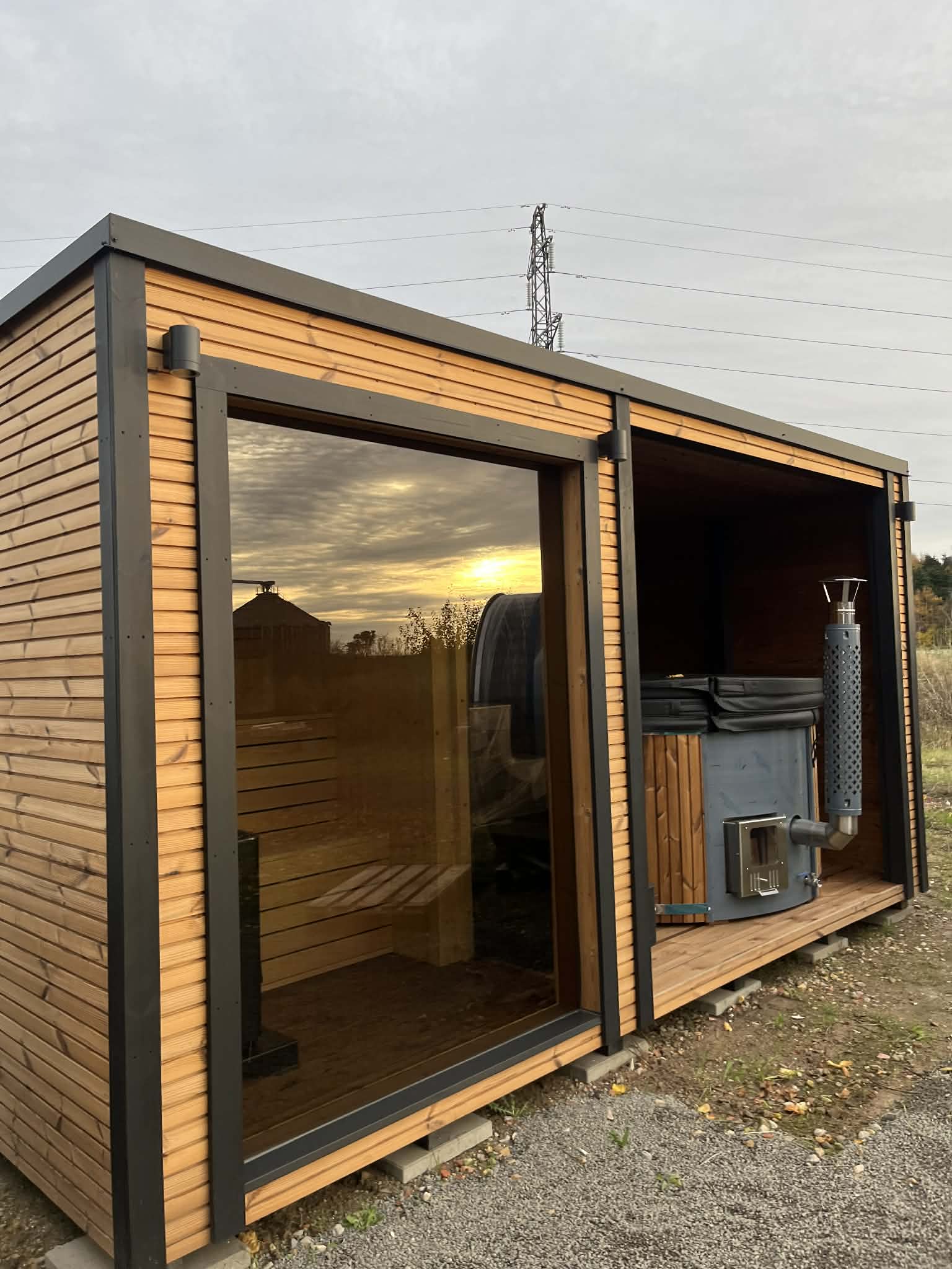 Eksklusiv rammesauna med integreret område til vildmarksbad eller grill – til salg! 🔥✨